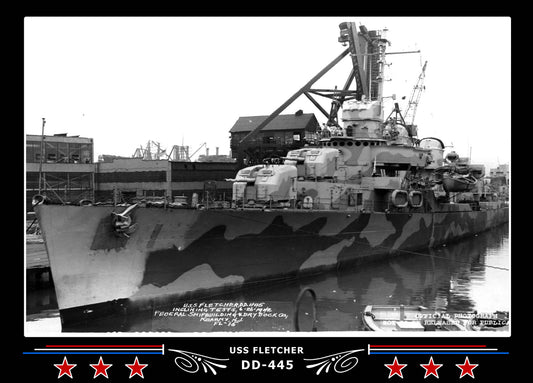 USS FLETCHER DD-445 Framed Navy Ship Display