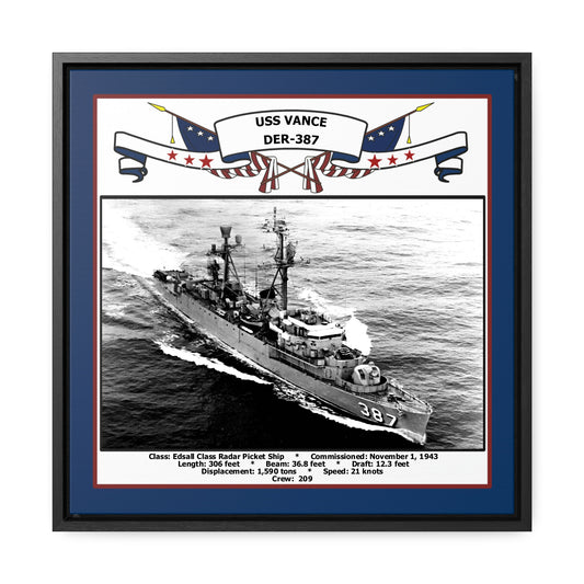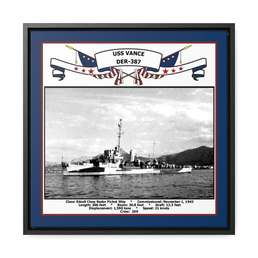 USS Vance DER-387 Framed Navy Ship Photo 105DER387