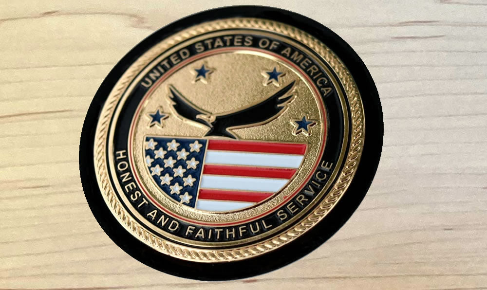 - Embedded metal United States - Honest and Faithful Service seal proudly displayed