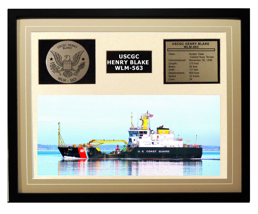 This is a beautiful ship display commemorating the USCGC Henry Blake WLM-563. The artwork depicts the USCGC Henry Blake WLM-563 in all her glory. More than just an artist conception of the ship, this display includes a custom designed Coast Guard crest plaque and an engraved ship statistics plaque. This product is richly finished with custom cut and sized double mats and framed with a high quality black frame. Only the best materials are used to complete our ship displays. Our Ship Displays make a generous and personal gift for any Coast Guard sailor.