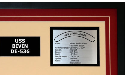 USS BIVIN DE-536 Framed Navy Ship Display