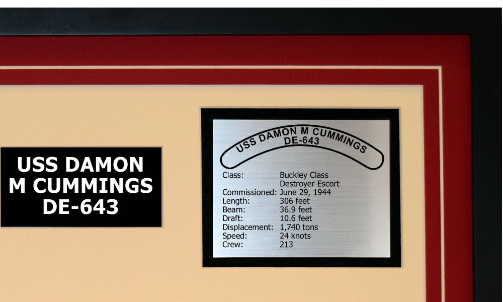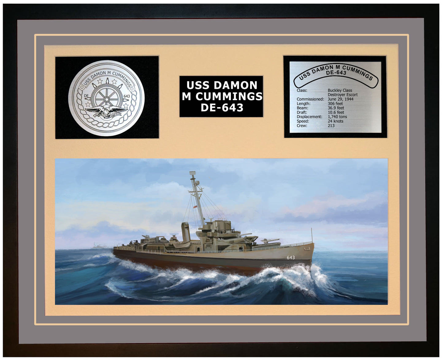 USS DAMON M CUMMINGS DE-643 Framed Navy Ship Display