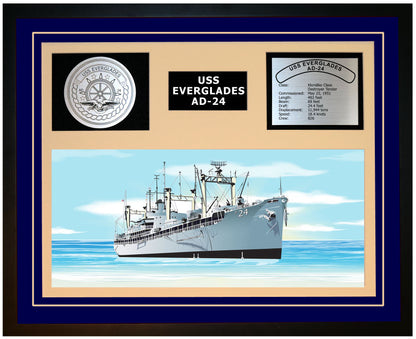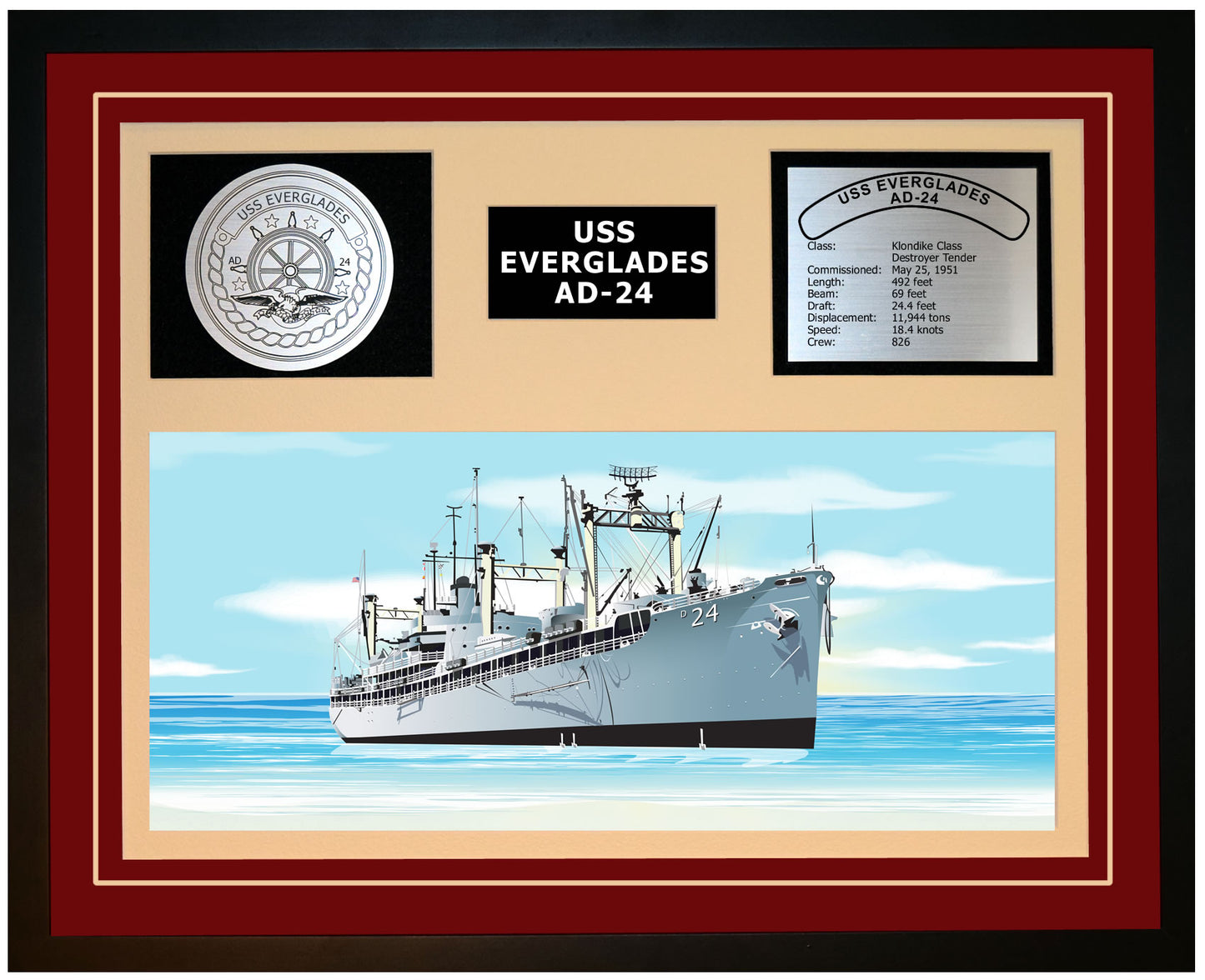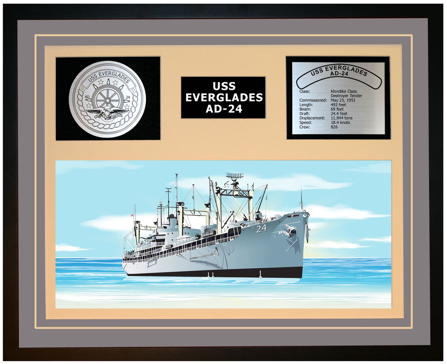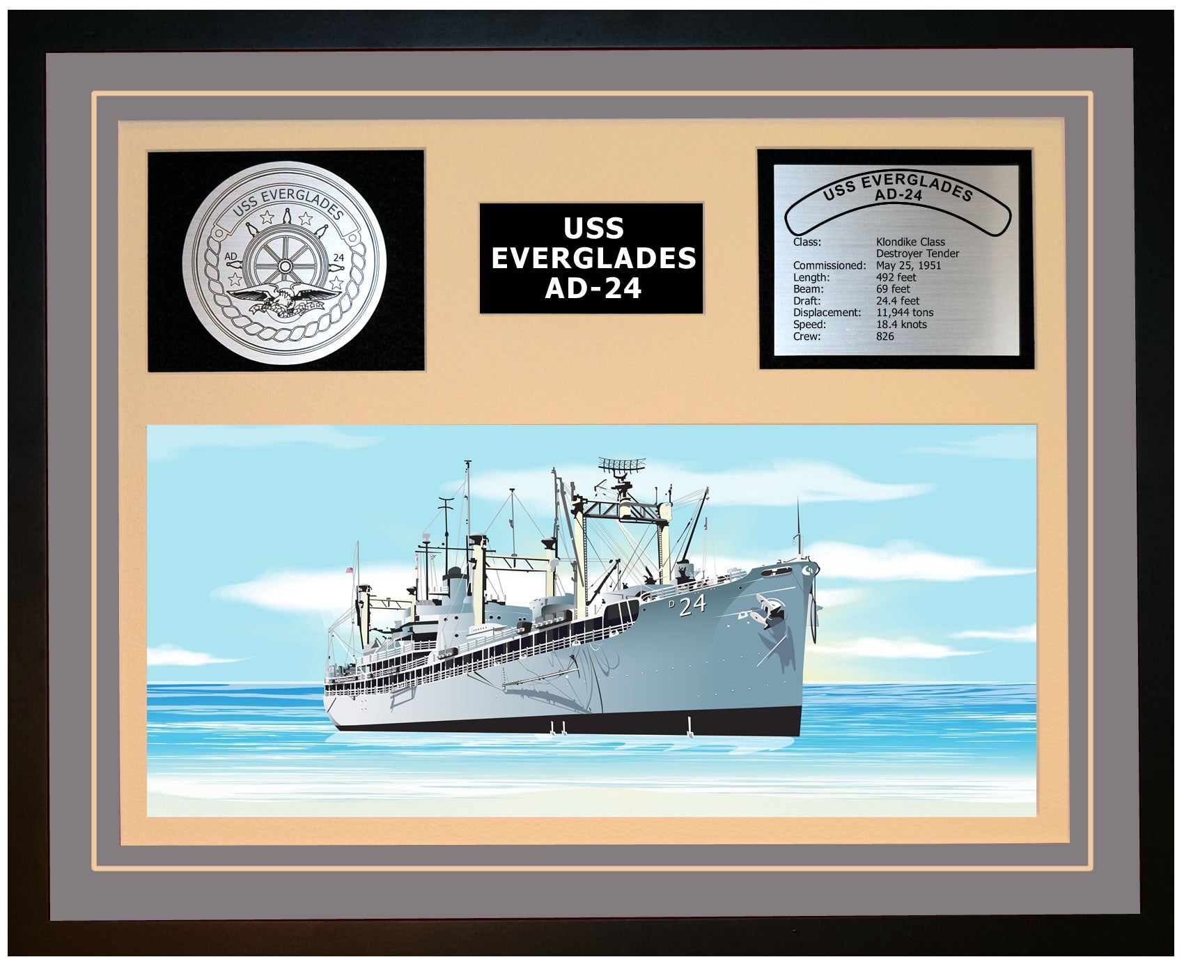 USS EVERGLADES AD-24 Framed Navy Ship Display