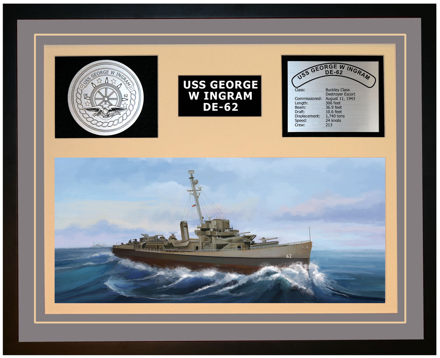USS GEORGE W INGRAM DE-62 Framed Navy Ship Display