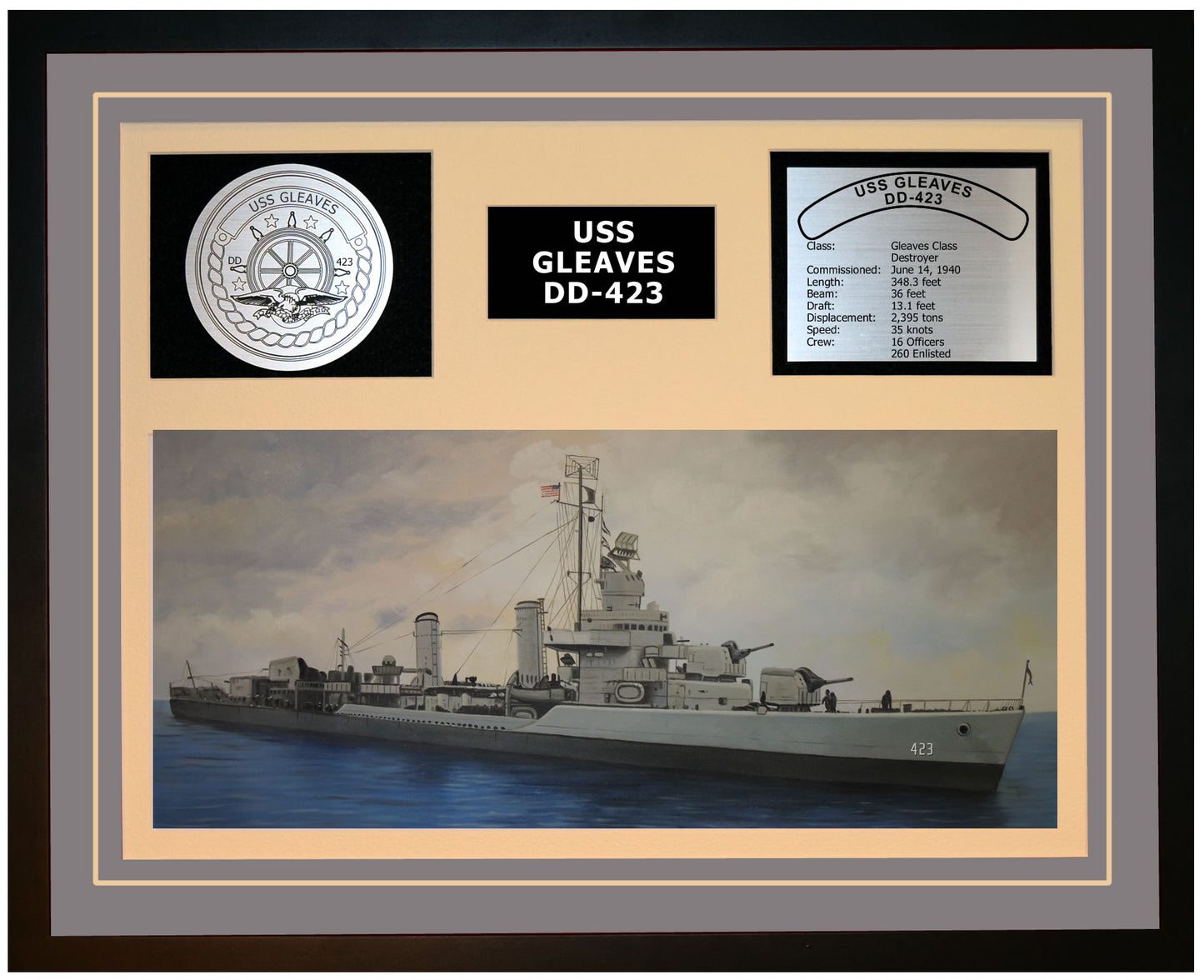 USS GLEAVES DD-423 Framed Navy Ship Display