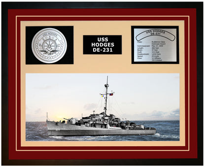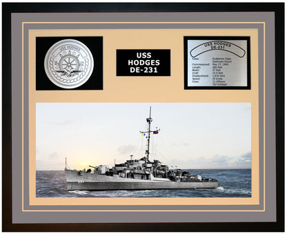 USS HODGES DE-231 Framed Navy Ship Display