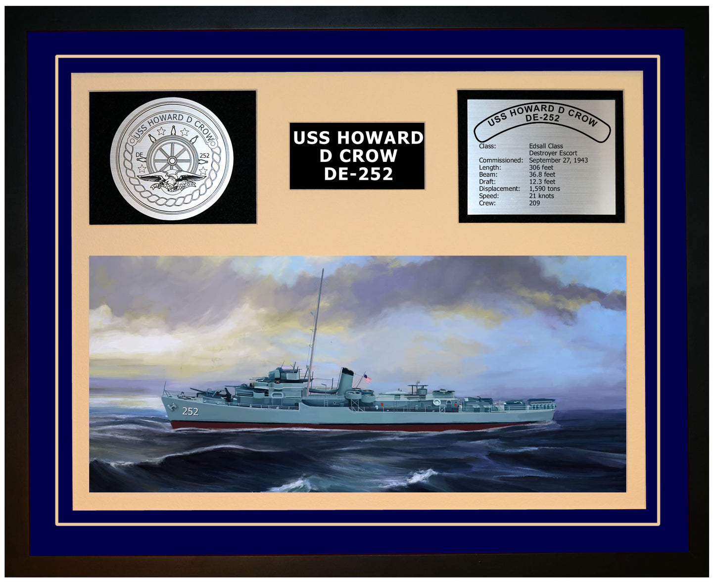 USS HOWARD D CROW DE-252 Framed Navy Ship Display