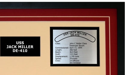 USS JACK MILLER DE-410 Framed Navy Ship Display