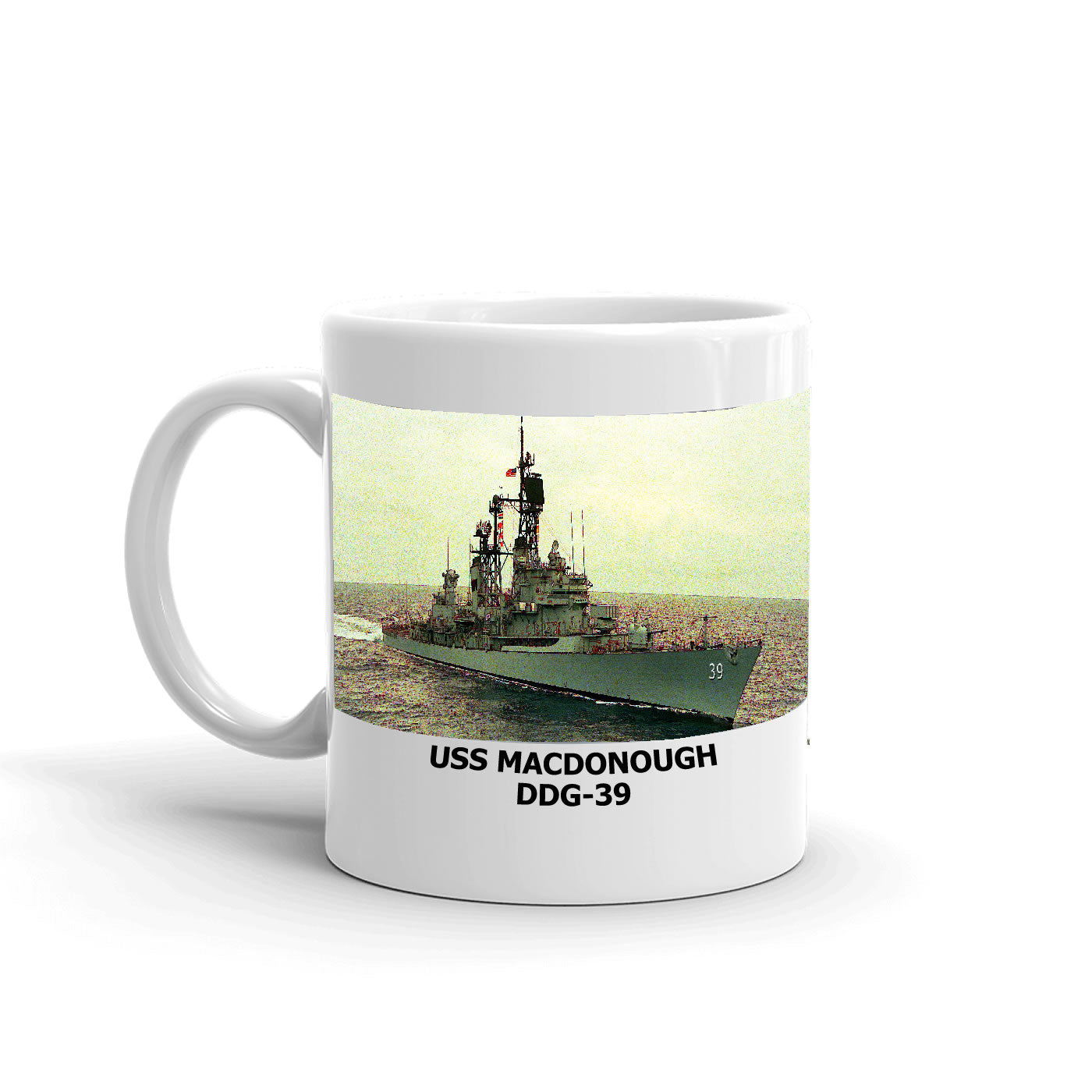 Celebrate your Navy pride with this USS MACDONOUGH DDG-39 Coffee Mug. Pictured is custom art of your ship! Whether you're drinking your morning coffee, evening tea, or something in between “ this mug's for you! It's sturdy and glossy with a vivid print that'll withstand the microwave and dishwasher.
