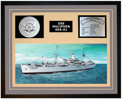USS MULIPHEN AKA-61 Framed Navy Ship Display