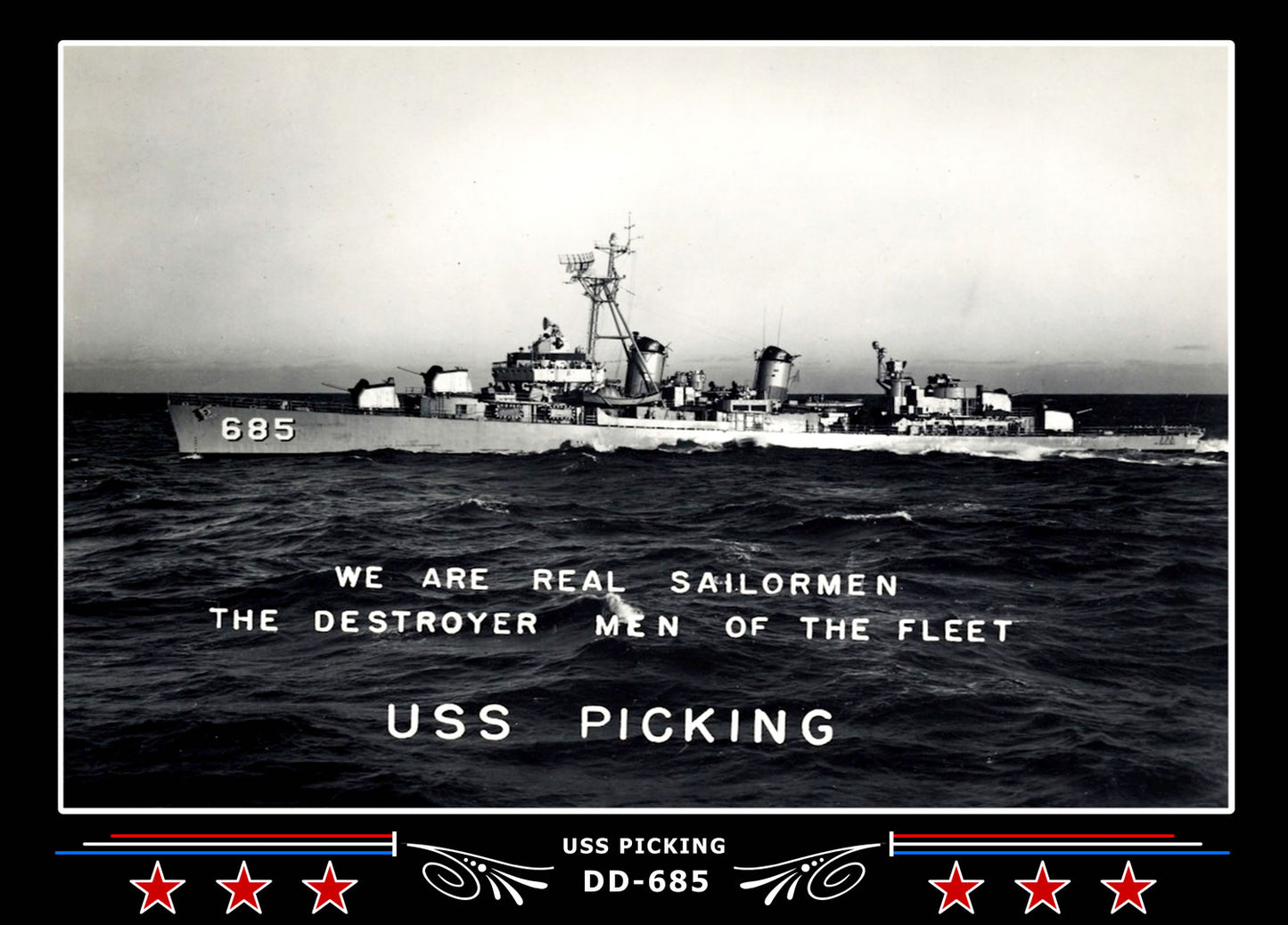 - Upgrade to a beautiful framed and matted version of this photo? Search for 'USS PICKING DD 685 FRAMED PHOTO' to find the framed version of this photo!
