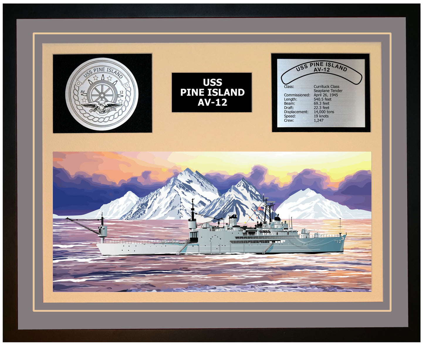 USS PINE ISLAND AV-12 Framed Navy Ship Display