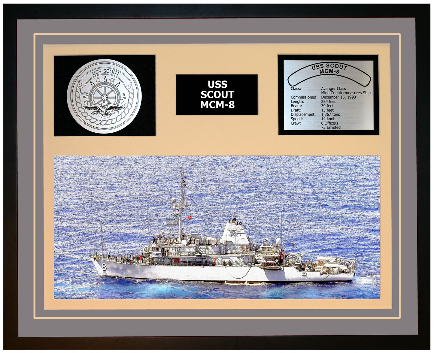 USS SCOUT MCM-8 Framed Navy Ship Display