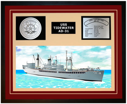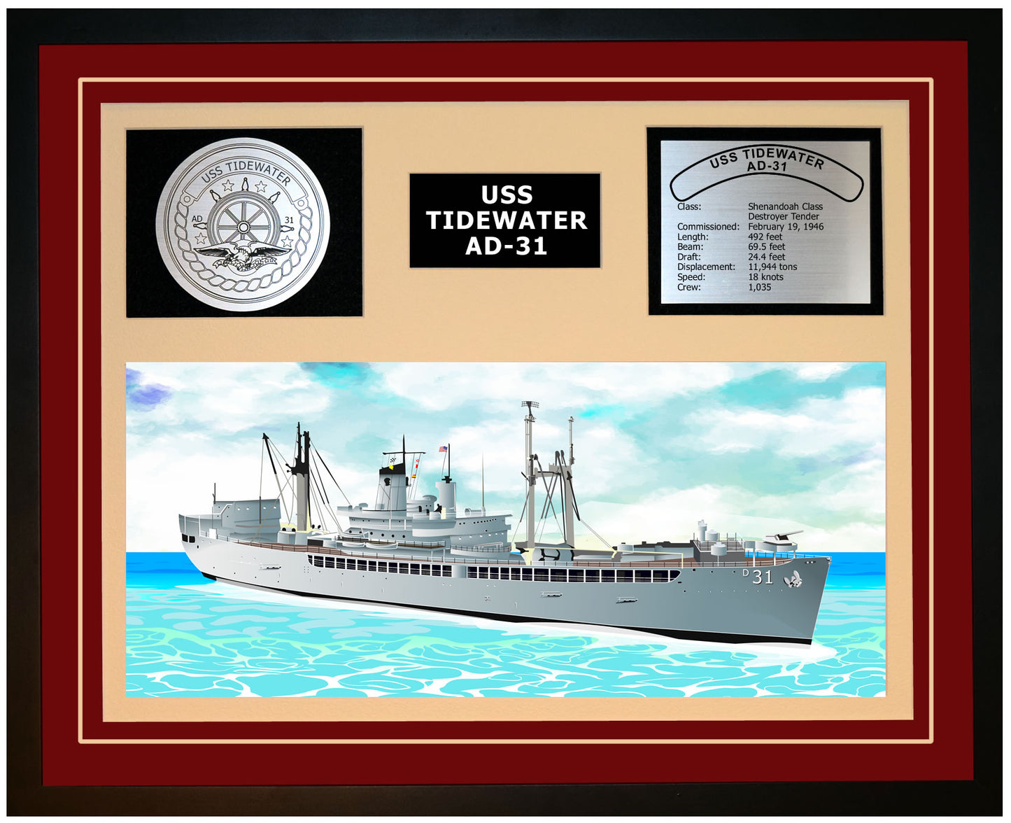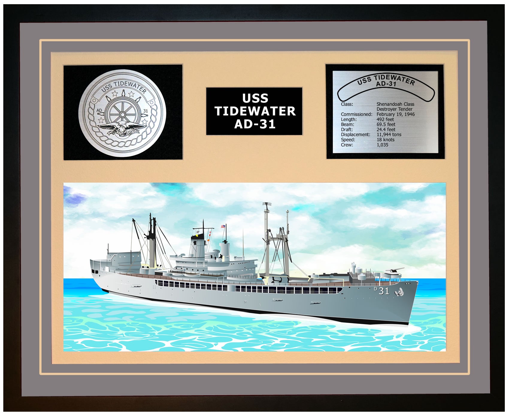 USS TIDEWATER AD-31 Framed Navy Ship Display