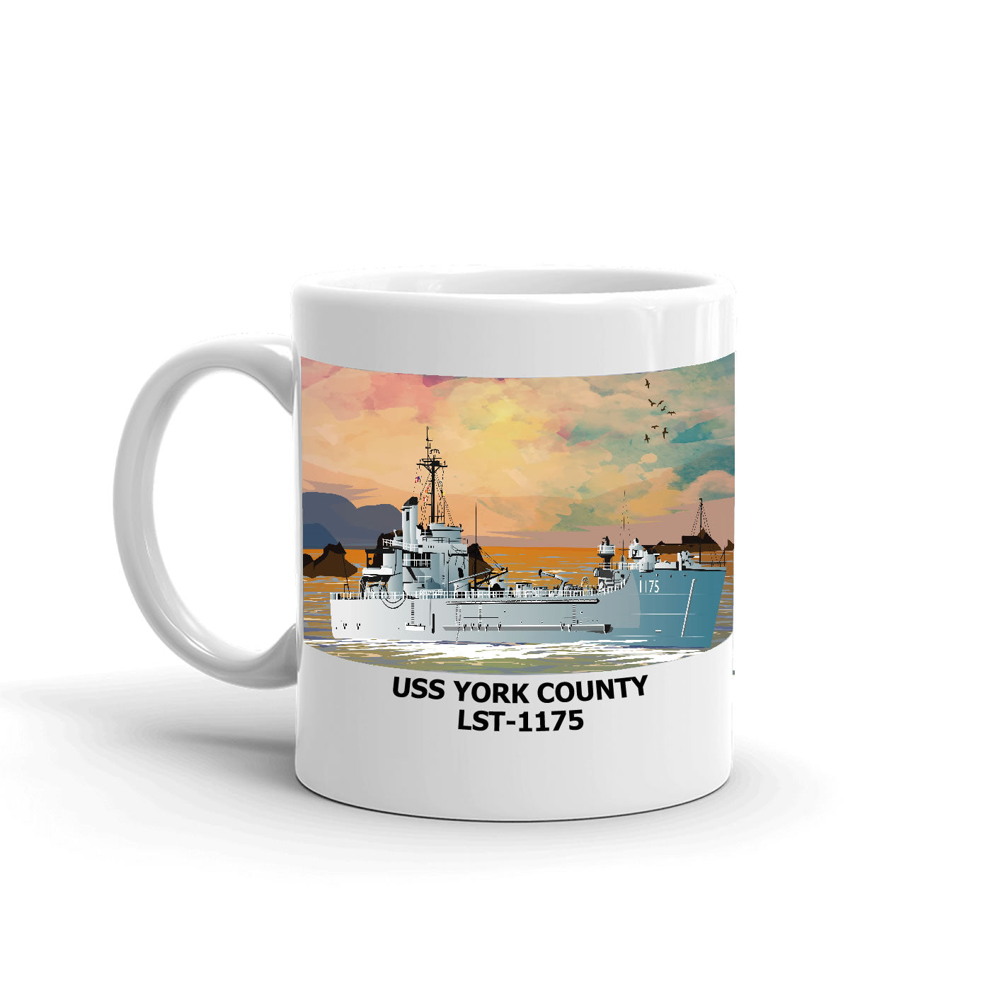Celebrate your Navy pride with this USS YORK COUNTY LST-1175 Coffee Mug. Pictured is custom art of your ship! Whether you're drinking your morning coffee, evening tea, or something in between “ this mug's for you! It's sturdy and glossy with a vivid print that'll withstand the microwave and dishwasher.
